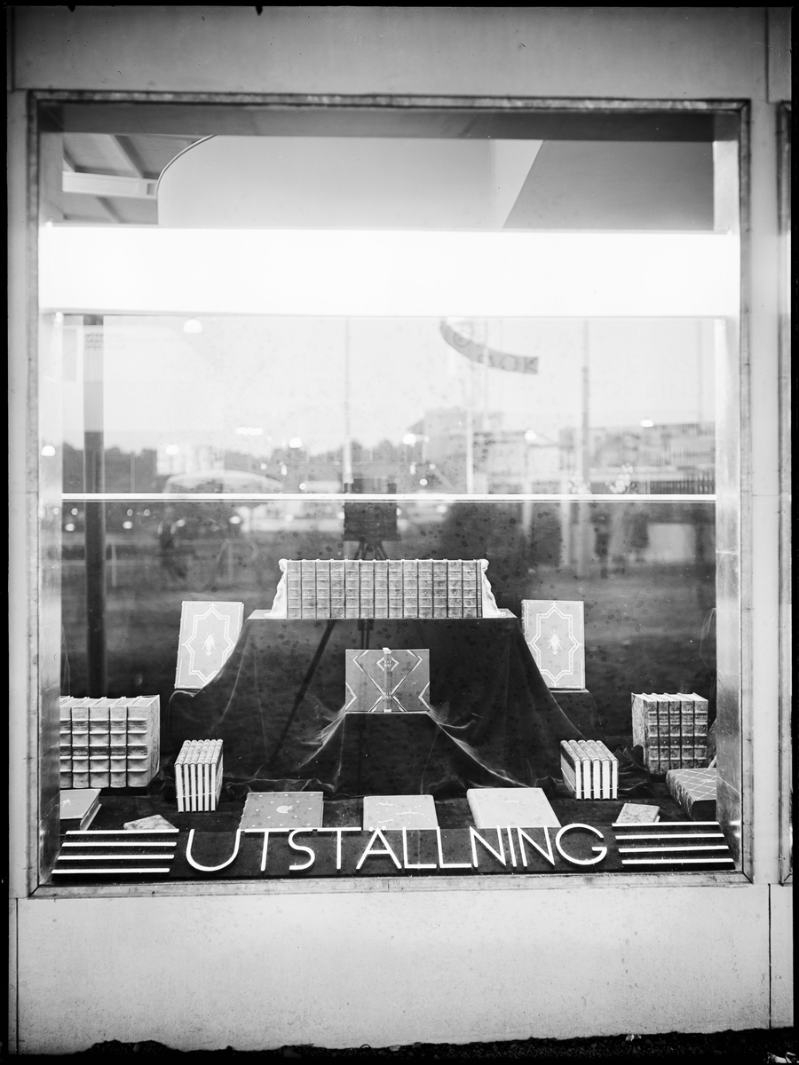 Titel: Stockholmsutställningen 1930 Utställning av bokband i monter.