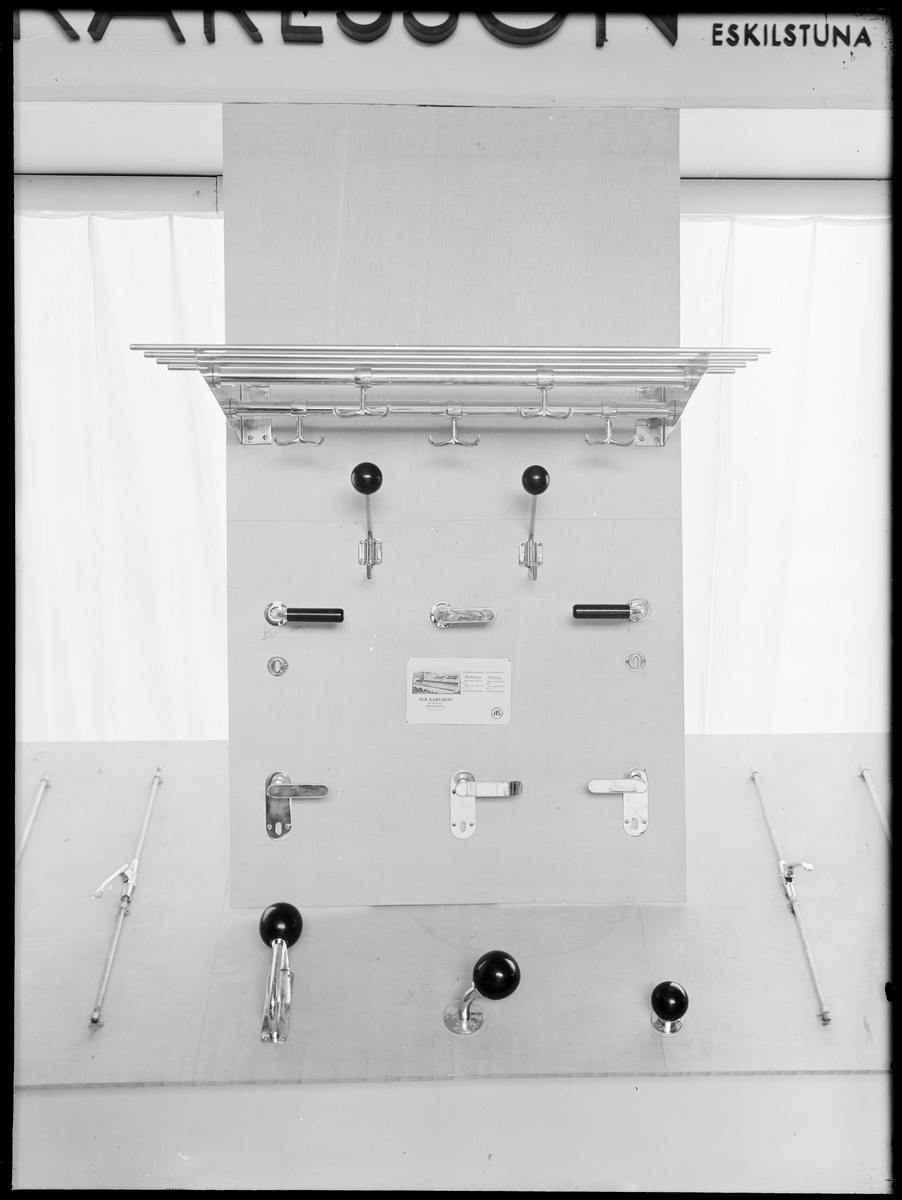 Titel: Stockholmsutställningen 1930 Handtag och klädhängare.