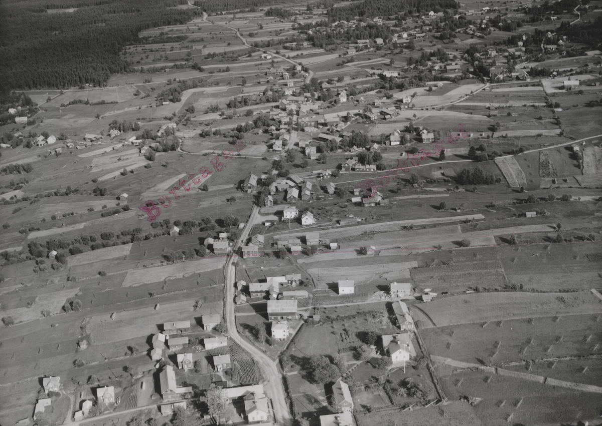 Flygfoto över Skattungbyn, Orsa kommun, år 1950.