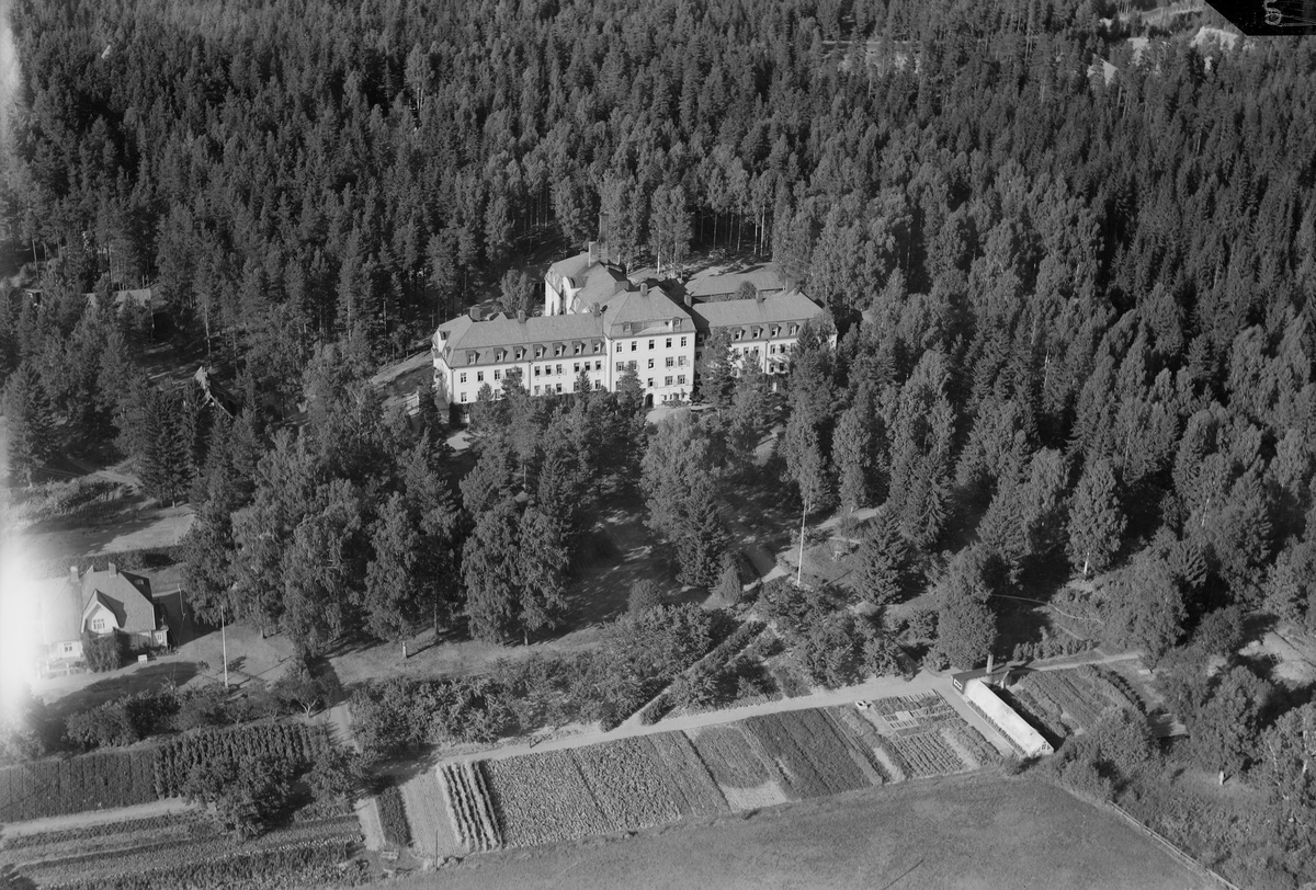 Flygfoto över Sanatoriet Solbacken, Kullsveden.