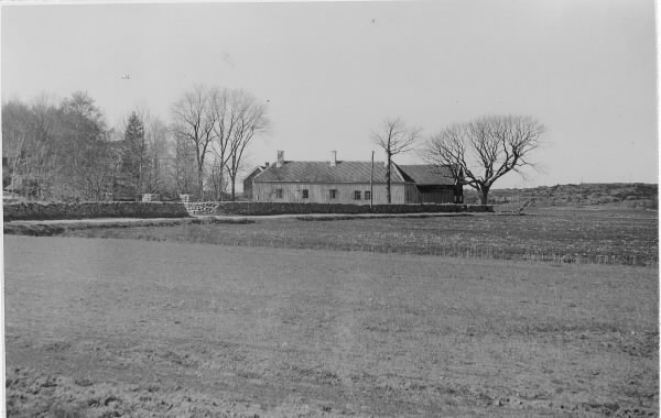 Norra Knapegården i Onsala med manbyggnaden i förgrunden och ekonomibyggnaderna bakom denna. Skepparen Peter Clase var den som genom ny- och tillbyggnader under 1820-30-talen gjorde att gården blev kringbyggd. Drygt 100 år senare började huset disponeras som arrendatorsbostad, vissa byggnader blev överflödiga och togs ner, vilket syns på bilden.