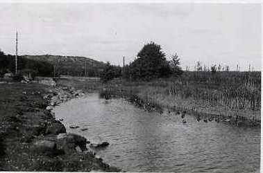 Brandhultsån. Vy med ån i förgrunden och ett berg i fonden.