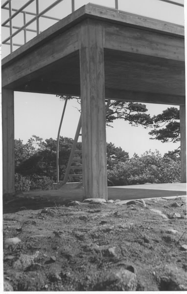 "Förstörda norra Kumlet", Västerskog, Särö. Kumlet ligger i den sydvästra delen av naturreservatet Särö Västerskog och består av gamla senvuxna krokiga ekar i blockmarker. Fotografen Wijk var botaniker och kanske menade han att utsiktstornet, som ser ut att vara uppfört nyligen, hade negativ inverkan på naturen och/eller platsen som sådan.