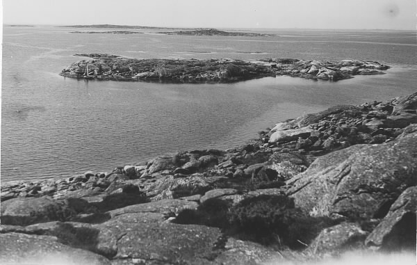 Från Malevikens norra udde ser vi Hangeliskär, Maliviksholmen och Risö, Släp socken.