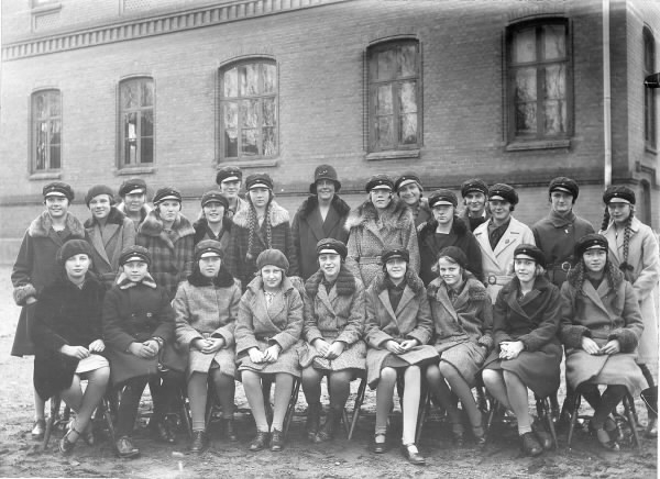 Klassföreståndare Brita Carlqvist, Elly Skärberg, Anna-Greta Vennerholm, Herdis Gustafsson, Tannar Wågberg, Evnor Carlsson, Maj Gjörcke, Dollan Mårtensson, Greta Johansson, Vivi Roos, Anna Björk, Brita Svensson?, Märta Björkström, Anna-Greta Pehrson, Kerstin Hylmö, Della Laurizohn, Lena Uddenberg, Elin Johansson. Alla personerna är inte identifierade.
