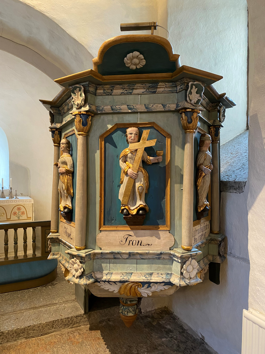 Predikstolskorg, Våmbs kyrka, Skövde kommun, Västra götalands län.