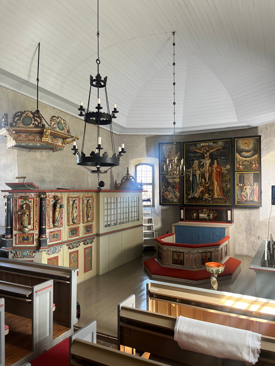 Översikt interiör Hagelbergs kyrka, Skövde kommun, Västra götalands län.