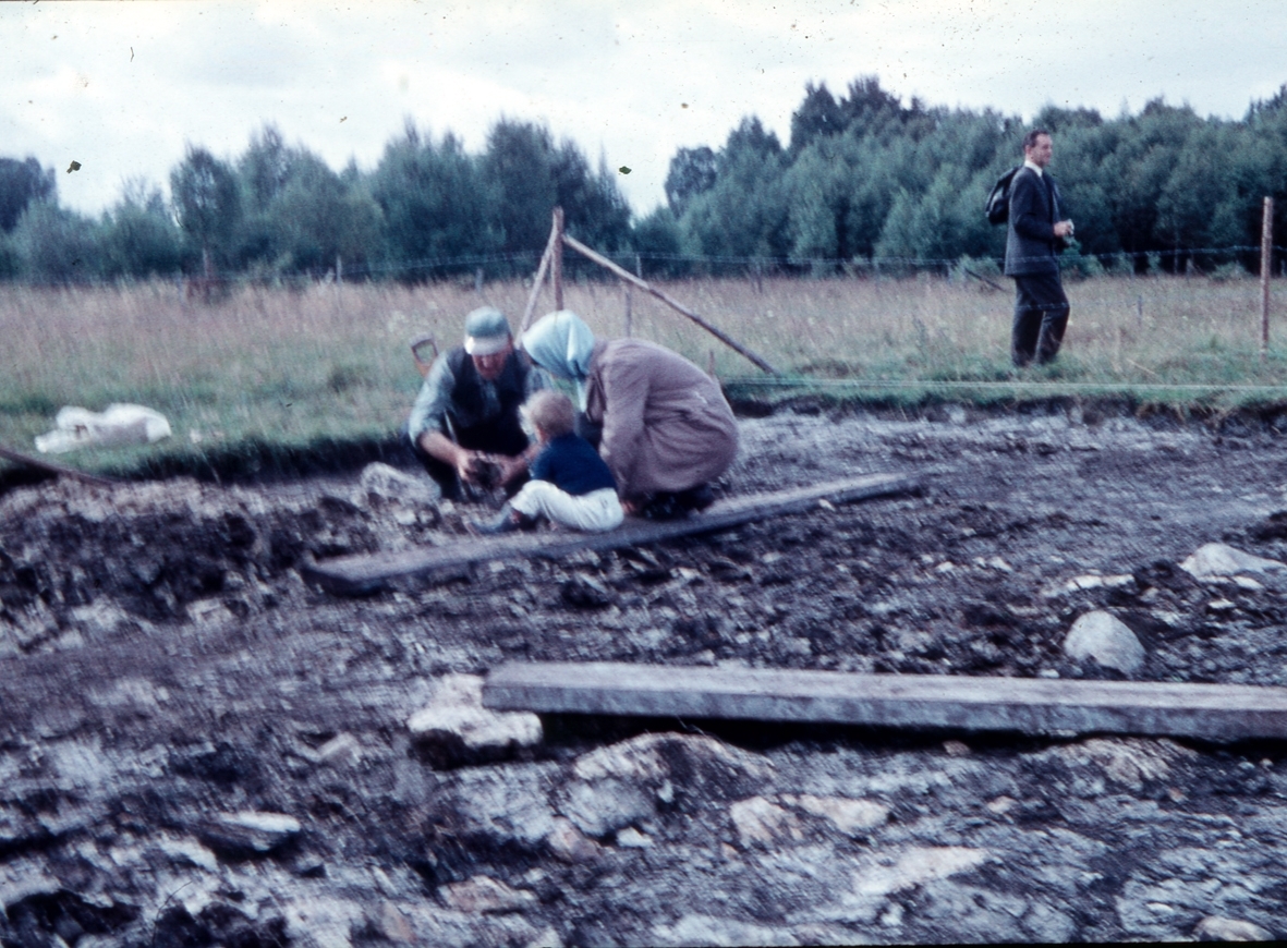 Prinsessan Margaretha, Els. Johansson och Anders Hagberg vid utgrävningarna av Skedemosse.