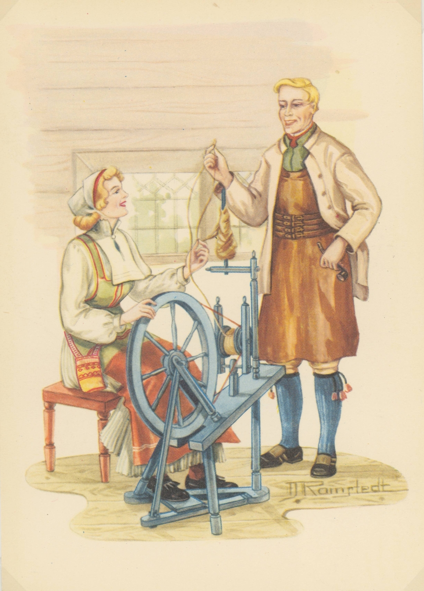 En man och kvinna i folkdräkter från Mora.