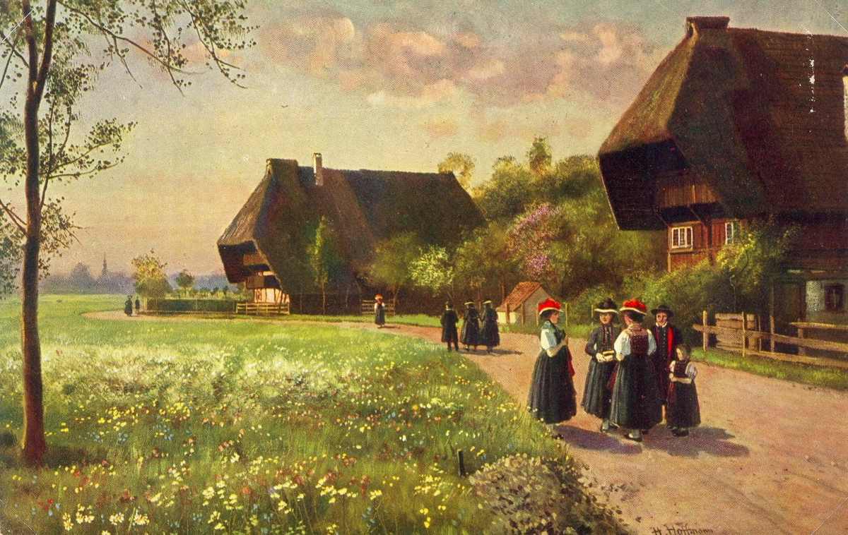 Människor från Heidelberg i folkdräkt, söndag morgon.