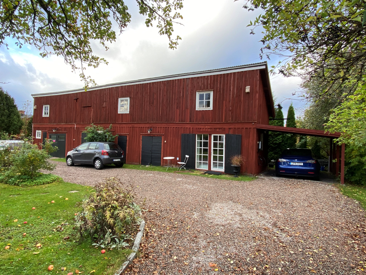 Uthuslänga inom fastigheten Strömsbro 65:3, rödfärgad panel, svarta portar