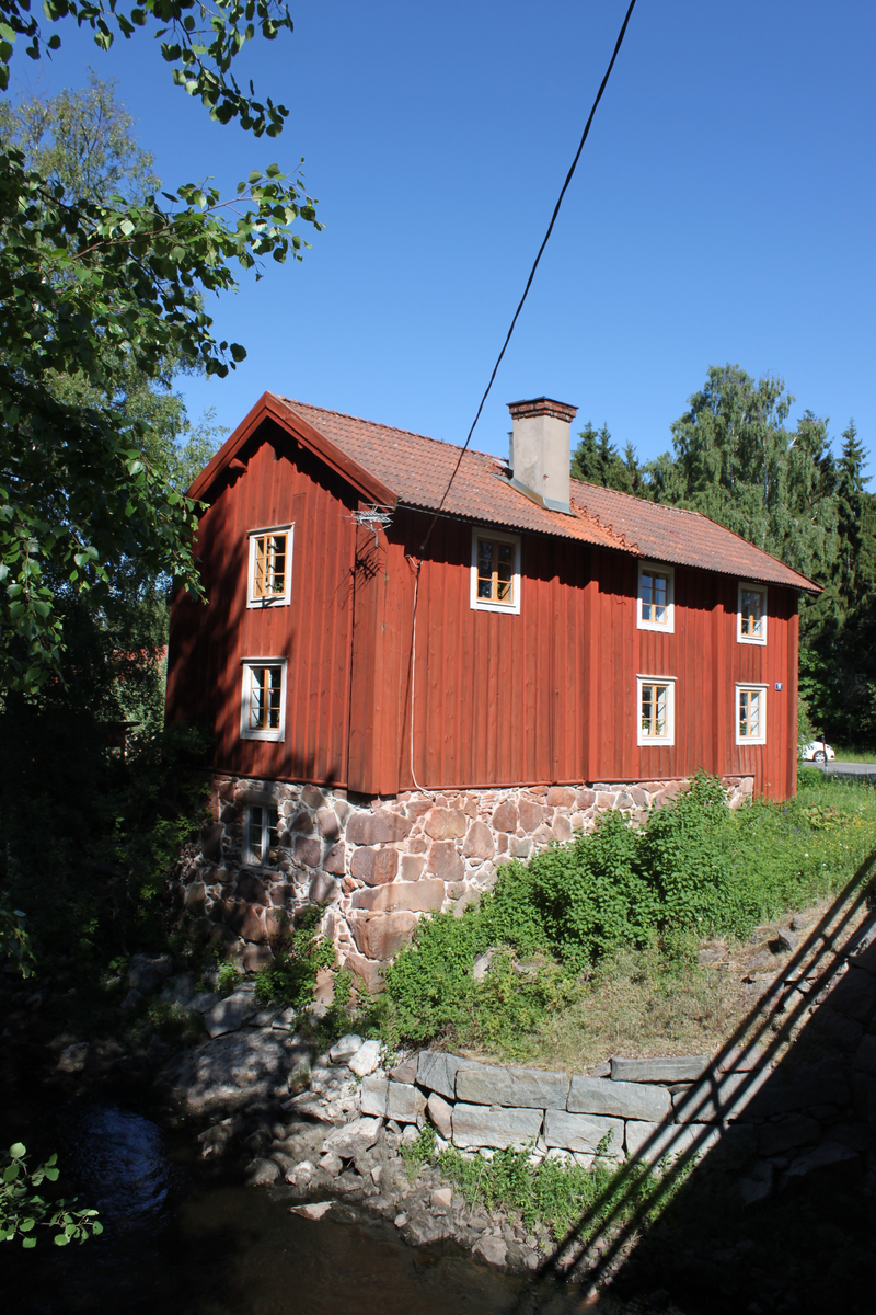 Bostadshuset vid gården Gerlaks, Gavelhyttan, murverk, faluröd panel, lertegel, skorsten.