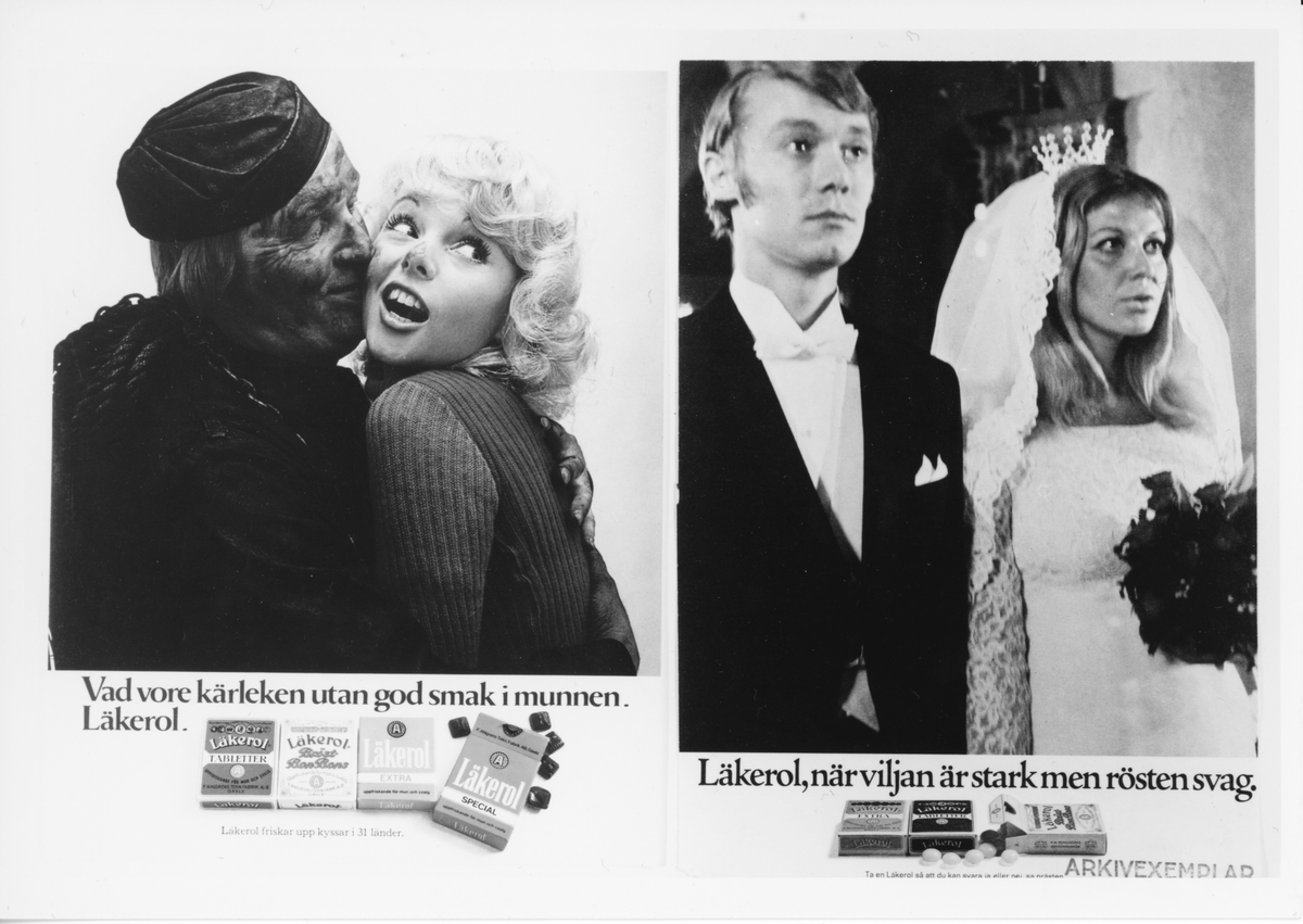 2 varianter av Läkerol reklam. Okänt år.