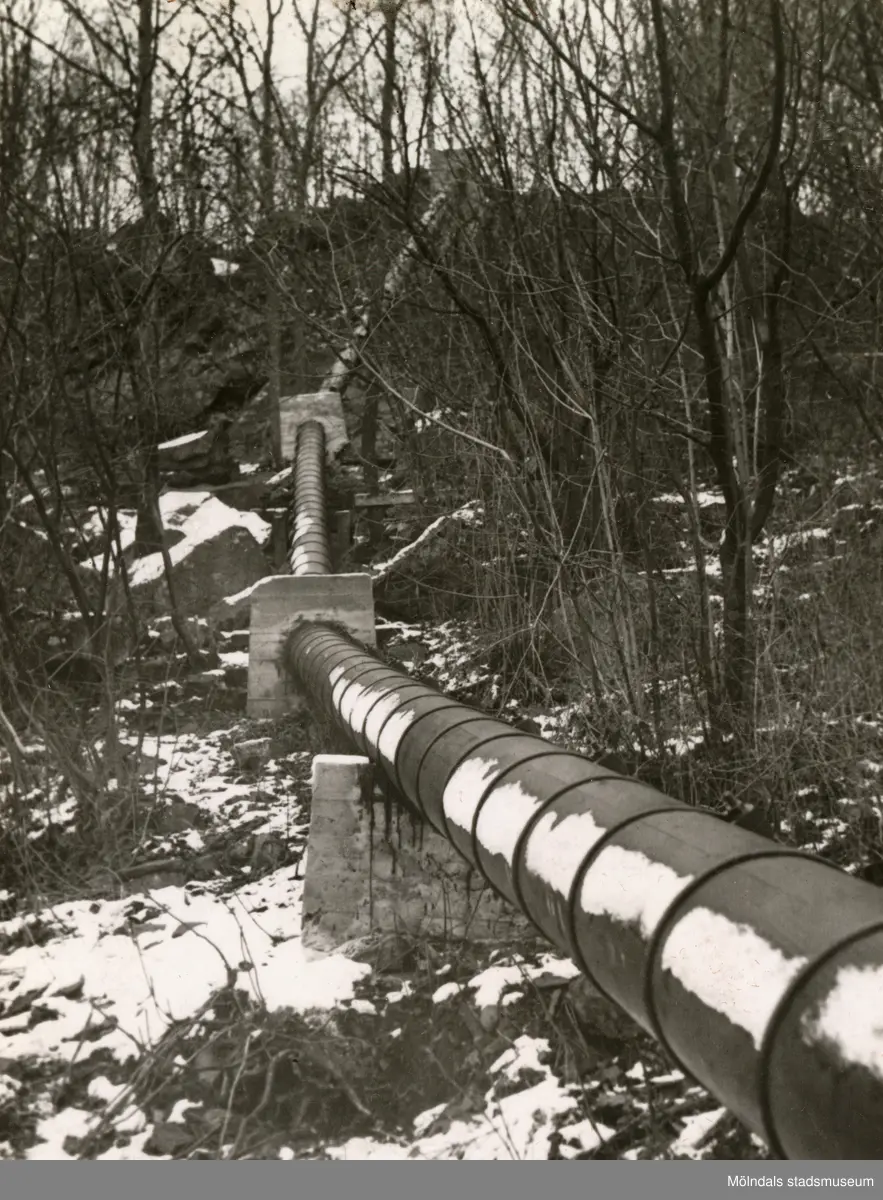 Titel: Trärörsledning från Södermalmsgatan i Toltorpsdalen, Mölndal, utförd år 1943.