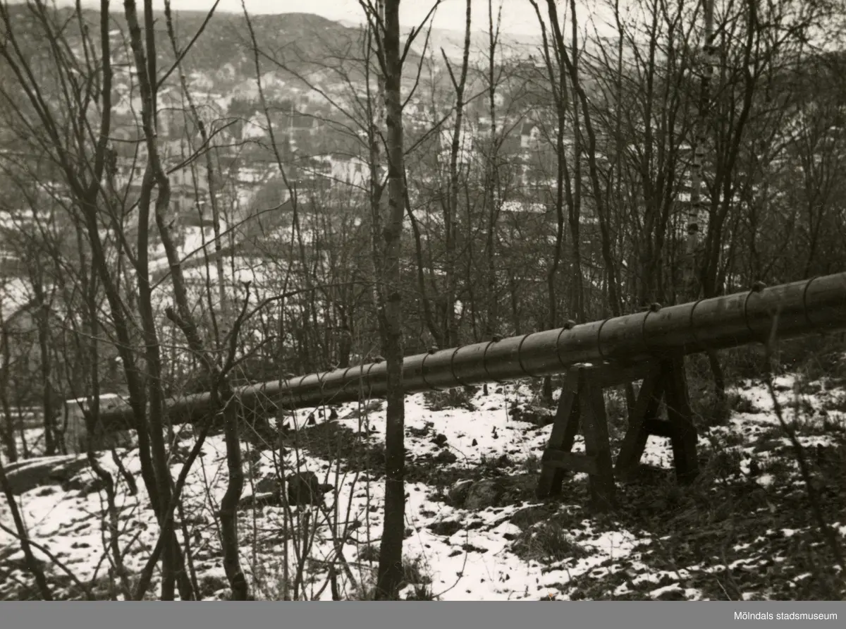 Titel: Trärörsledning från Södermalmsgatan i Toltorpsdalen, Mölndal, utförd år 1943.