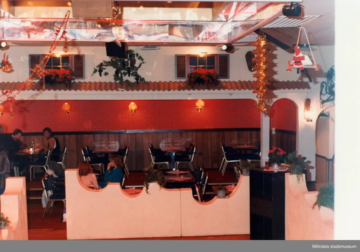 Interiörfotografi från Moulin Rouge, restaurang och diskotek med adress Kvarnbygatan 1 i Mölndal, år 1988.