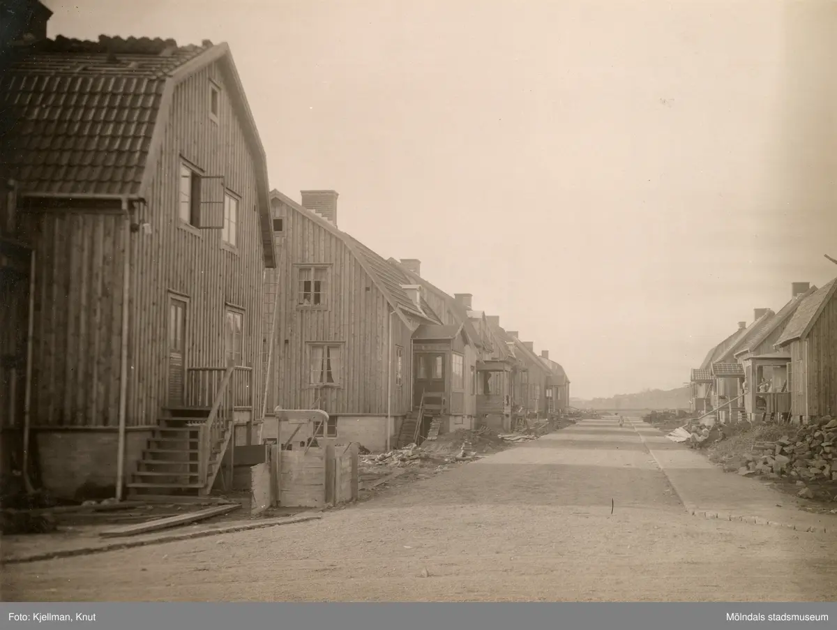Åbyäng i Åby, Mölndal, omkring 1923. Nybyggnader utefter ny gata.