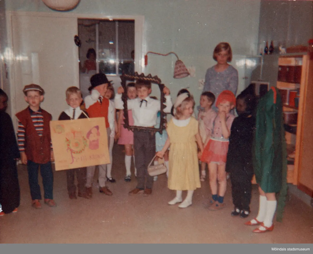 Våravslutning i Krokslätts lekskola på Dahlhemsgatan 1967. Namnuppgifter saknas.