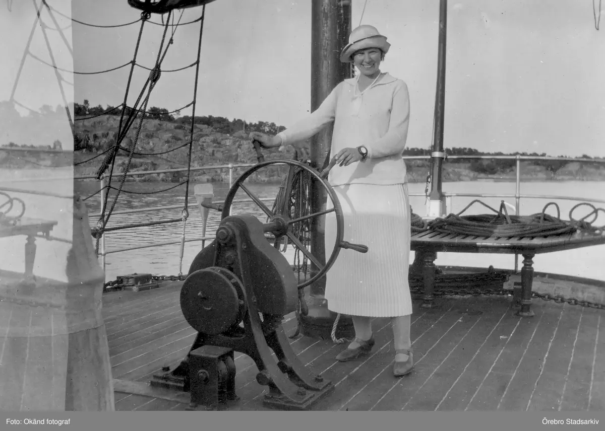 Kvinna vid roder i Sandhamn, 1926