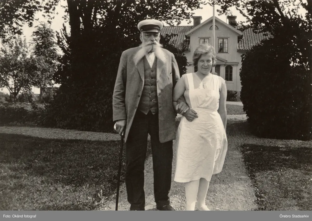 Par på grusgången framför Pettersbergs gård, 1930-tal