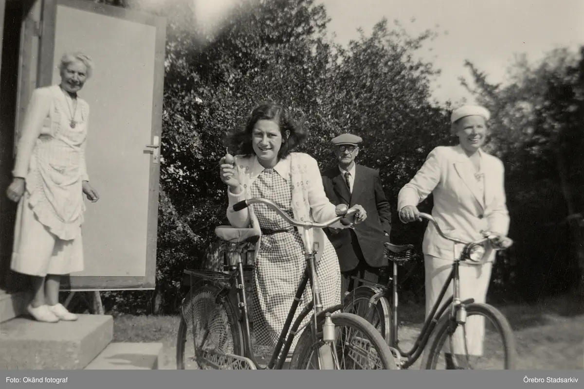 Maria förmanar cyklisterna på Pettersbergs gård, 1940-tal