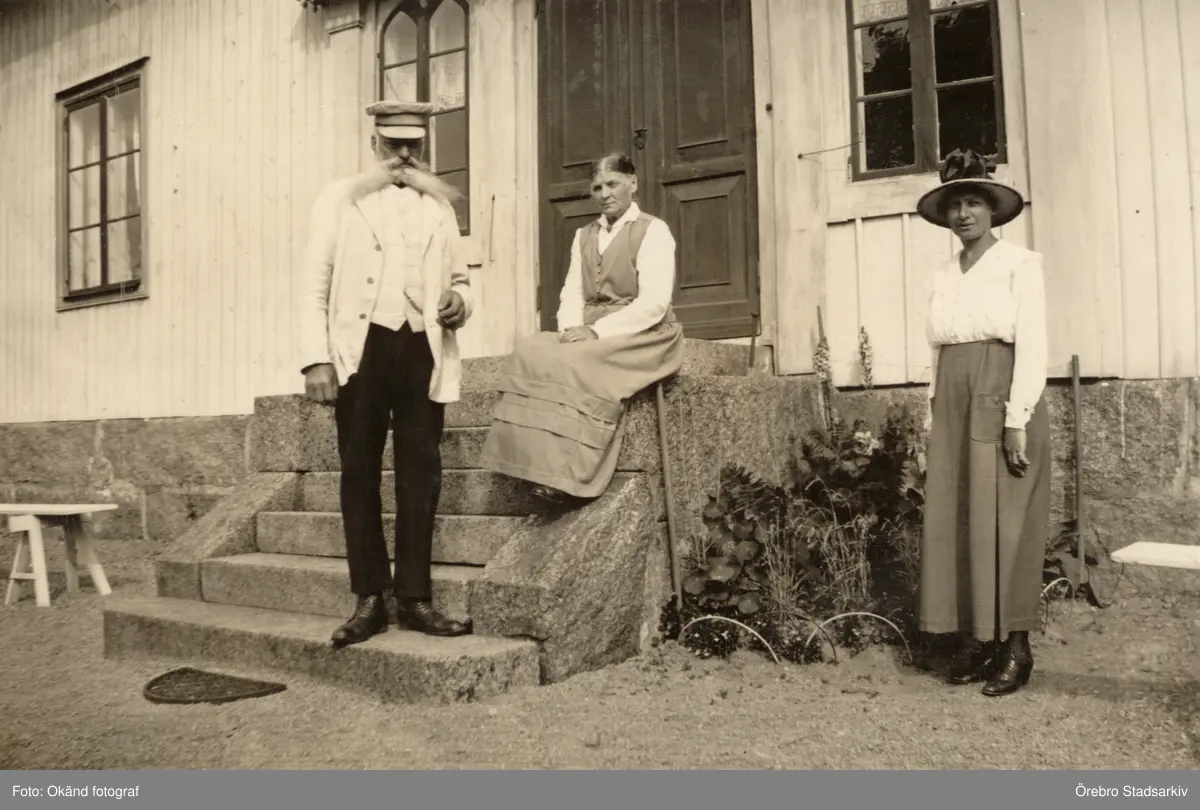 Familjen Larsson vid gårdstrappan till Pettersbergs gård, 1920-tal