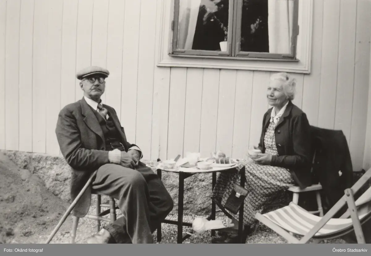 Kaffedags för syskonen Gustaf och Maja på Pettersbergs gård. 1930-tal