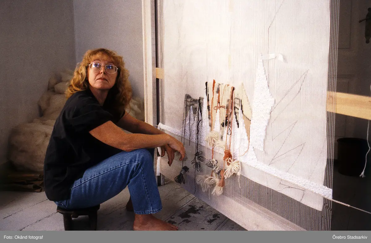 Konstnären arbetar med utsmyckning till Åbyverken, 1980-tal