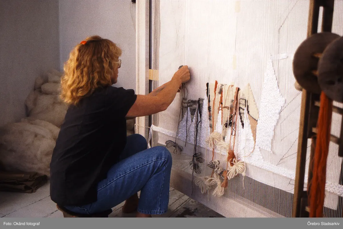 Konstnären arbetar med sin bild till Åbyverken, 1980-tal
