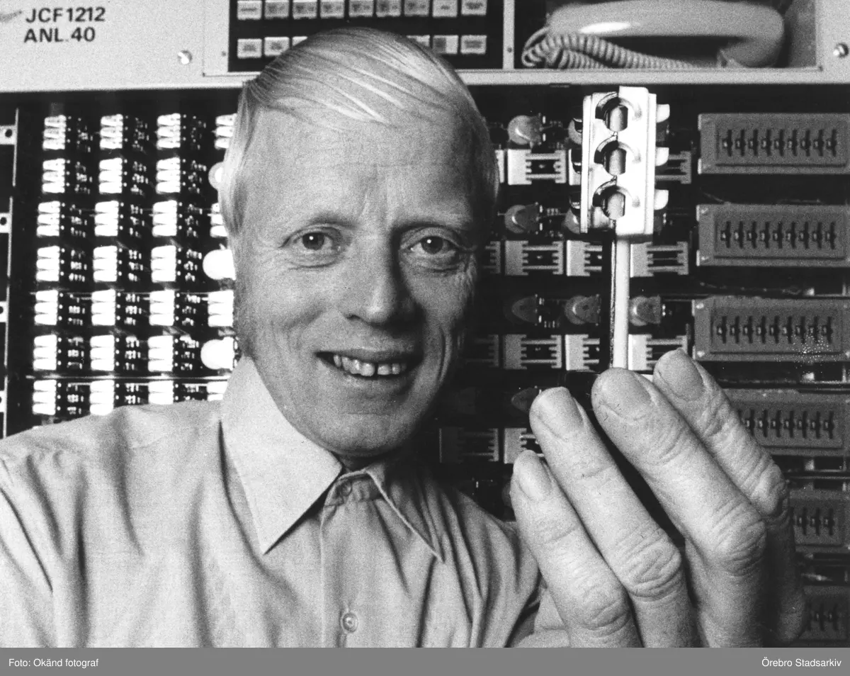 Porträtt av teknikern Hans Sjödin på elverket, 1970-tal