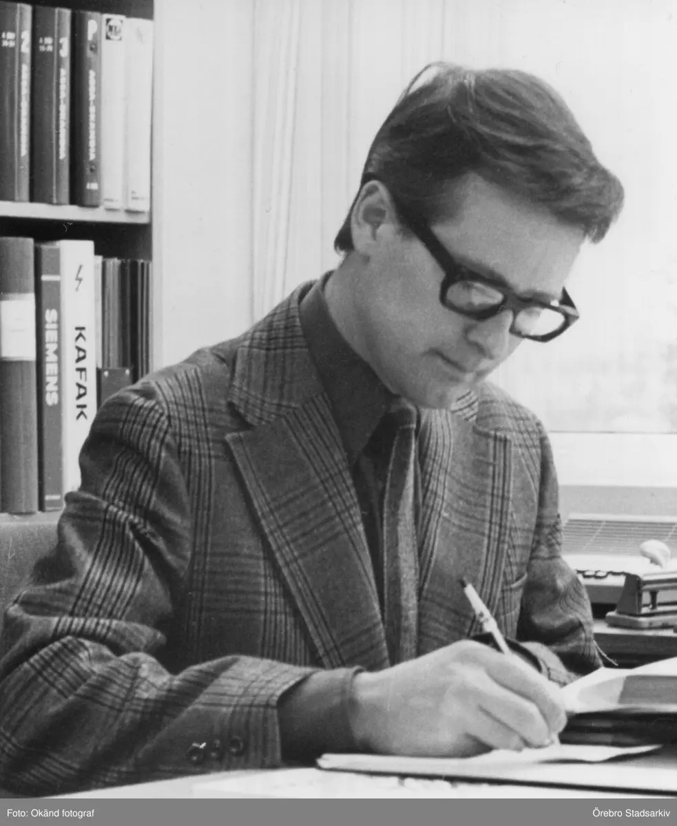 Inköpsingenjören Hasse Svensson på sitt kontor, 1970-tal