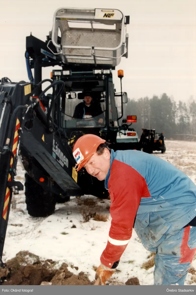 Grävarbete utförs med både grävmaskin och spade, 1990-tal