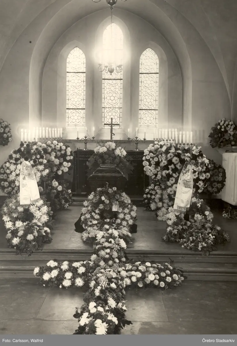 Blomsterarrangemang vid begravning i Olaus Petrikyrkan, 1940-tal