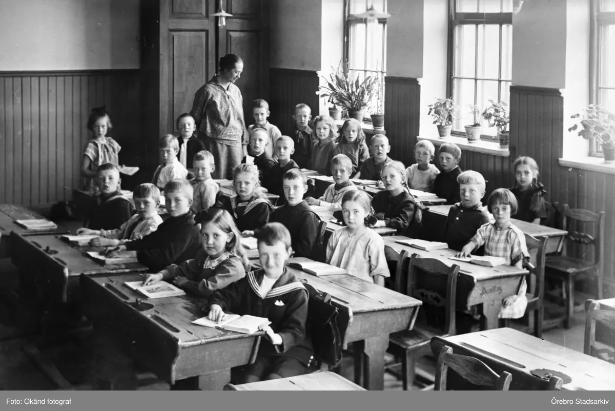 Lärarinna med skolklass i Örebro, 1920-tal