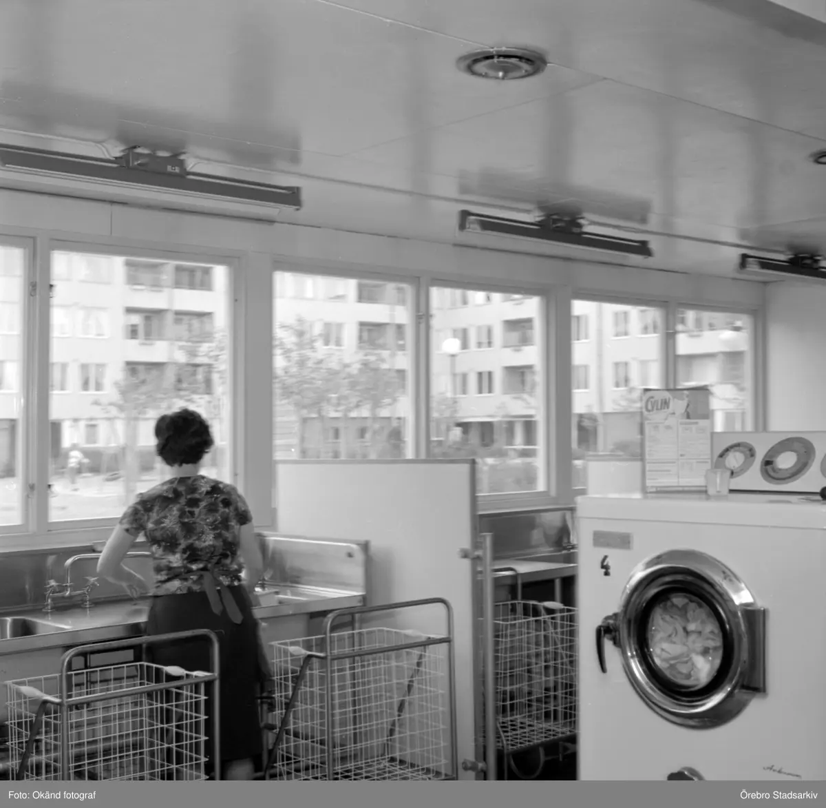 Titel: Kvinna i tvättstuga i Markbacken, 1960-tal