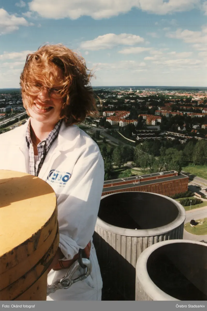 Skorstensarbete på Åbyverkens tak, 1996-06-14