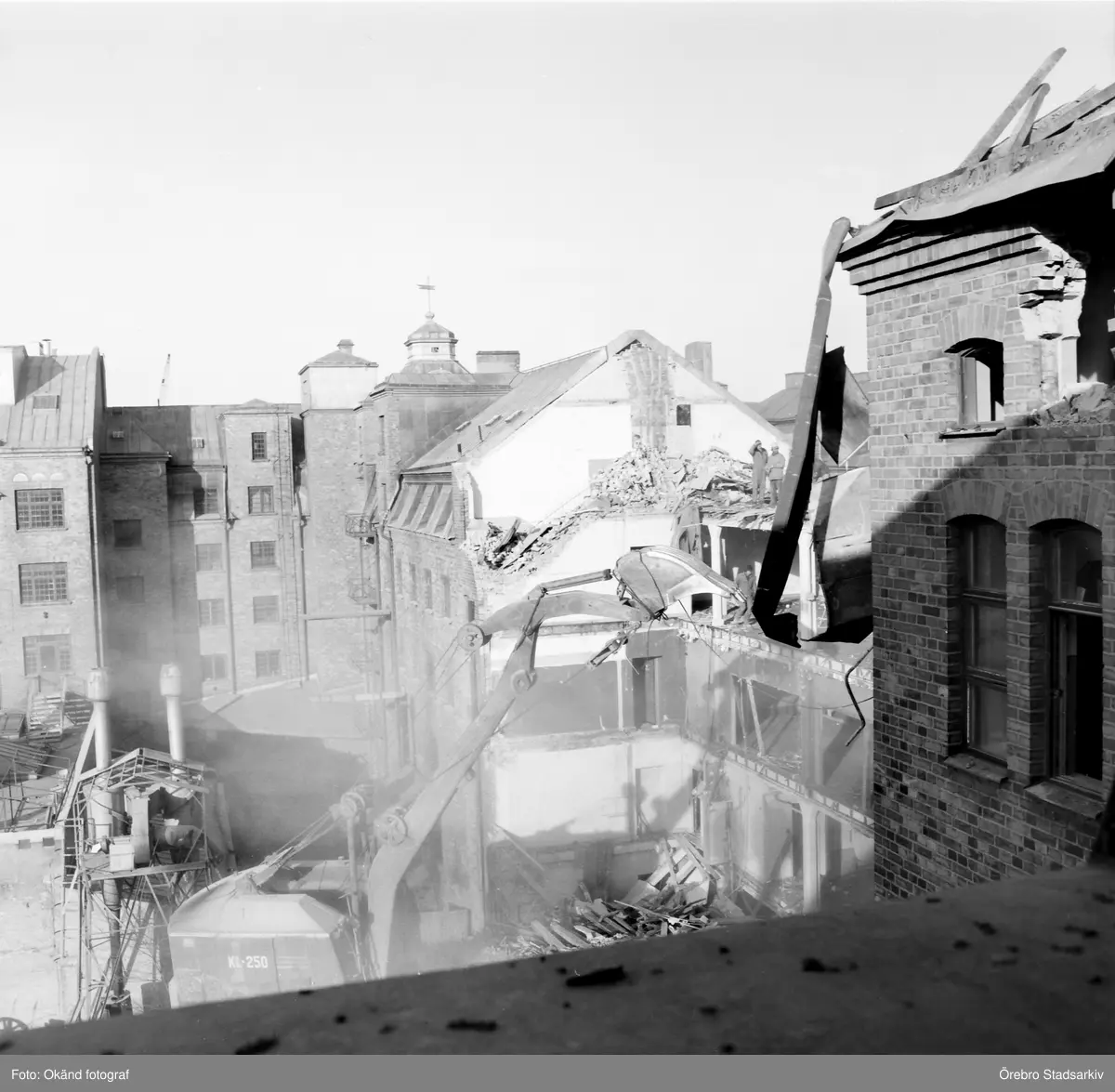Dammet yr vid rivning på Fredsgatan 4, 1970-tal