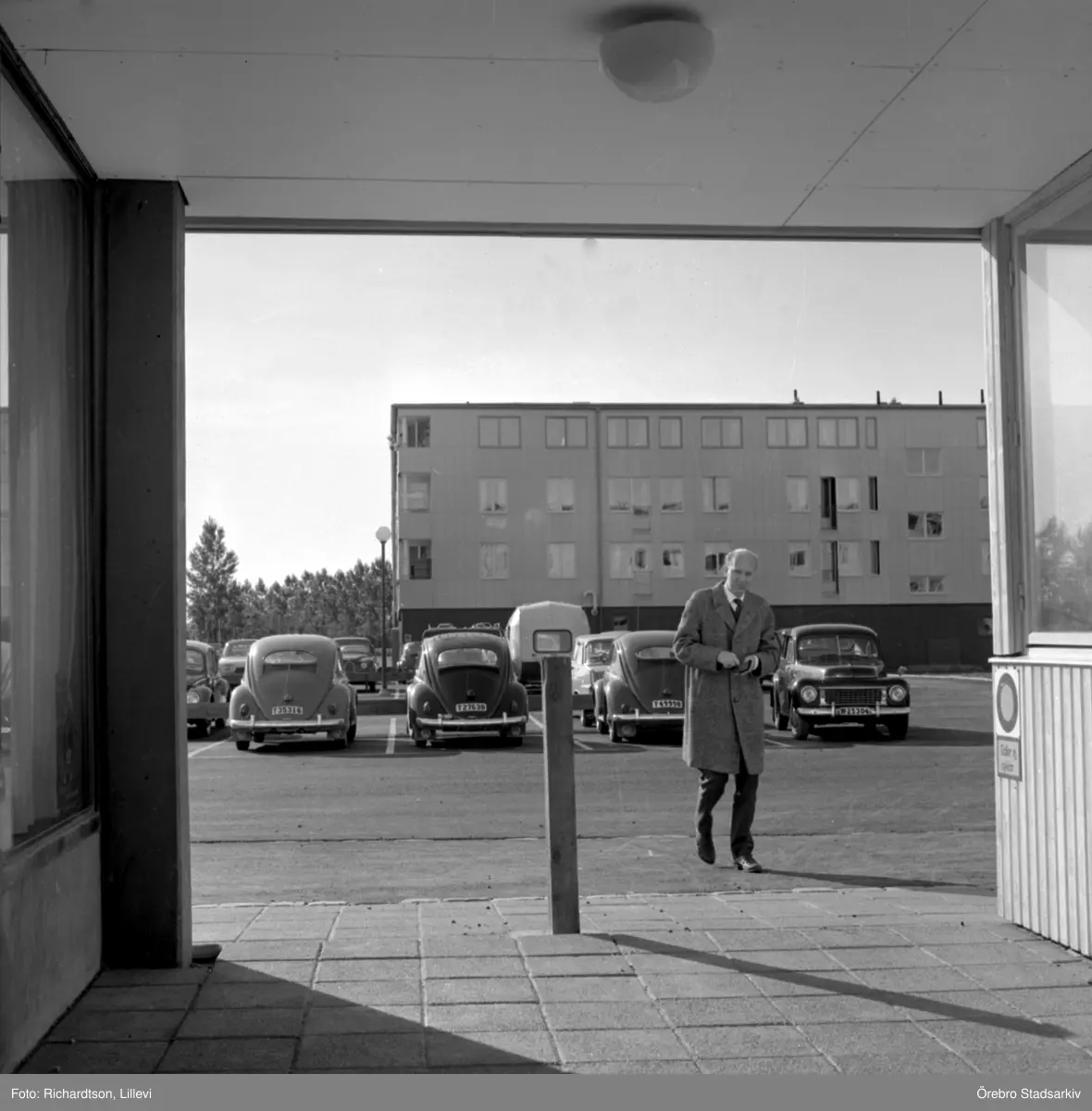 Man lämnar parkeringen i Markbacken, 1960-tal