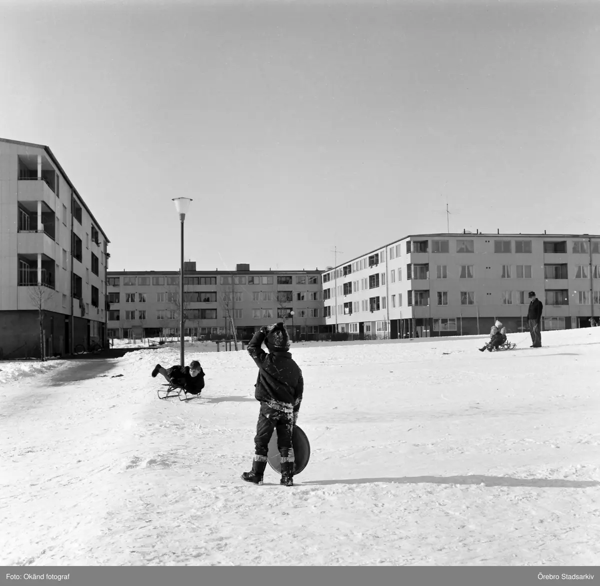Barn med pulka och kälke i Markbacken, 1960-tal