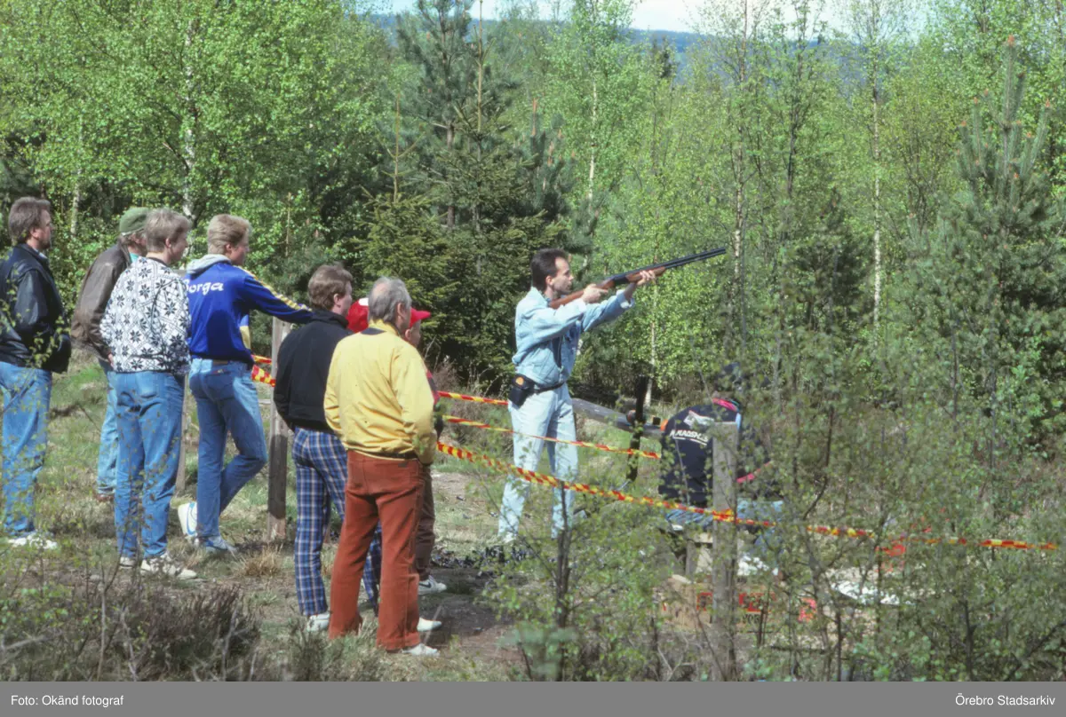 Provskjutning av hagelgevär på Vildmarksmässan i Ånnaboda, maj 1991
