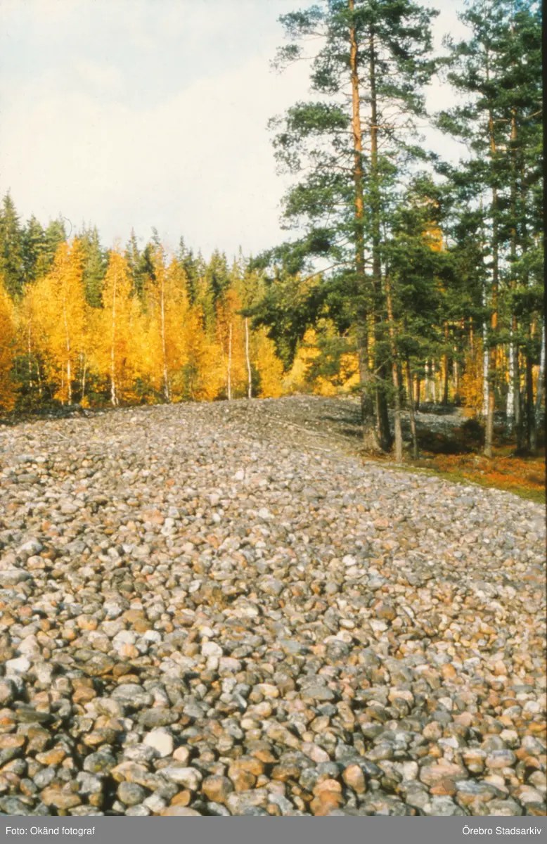Klapperstensfält omgivet av höstfärgade björkar vid Bergslagsleden, 1980-tal