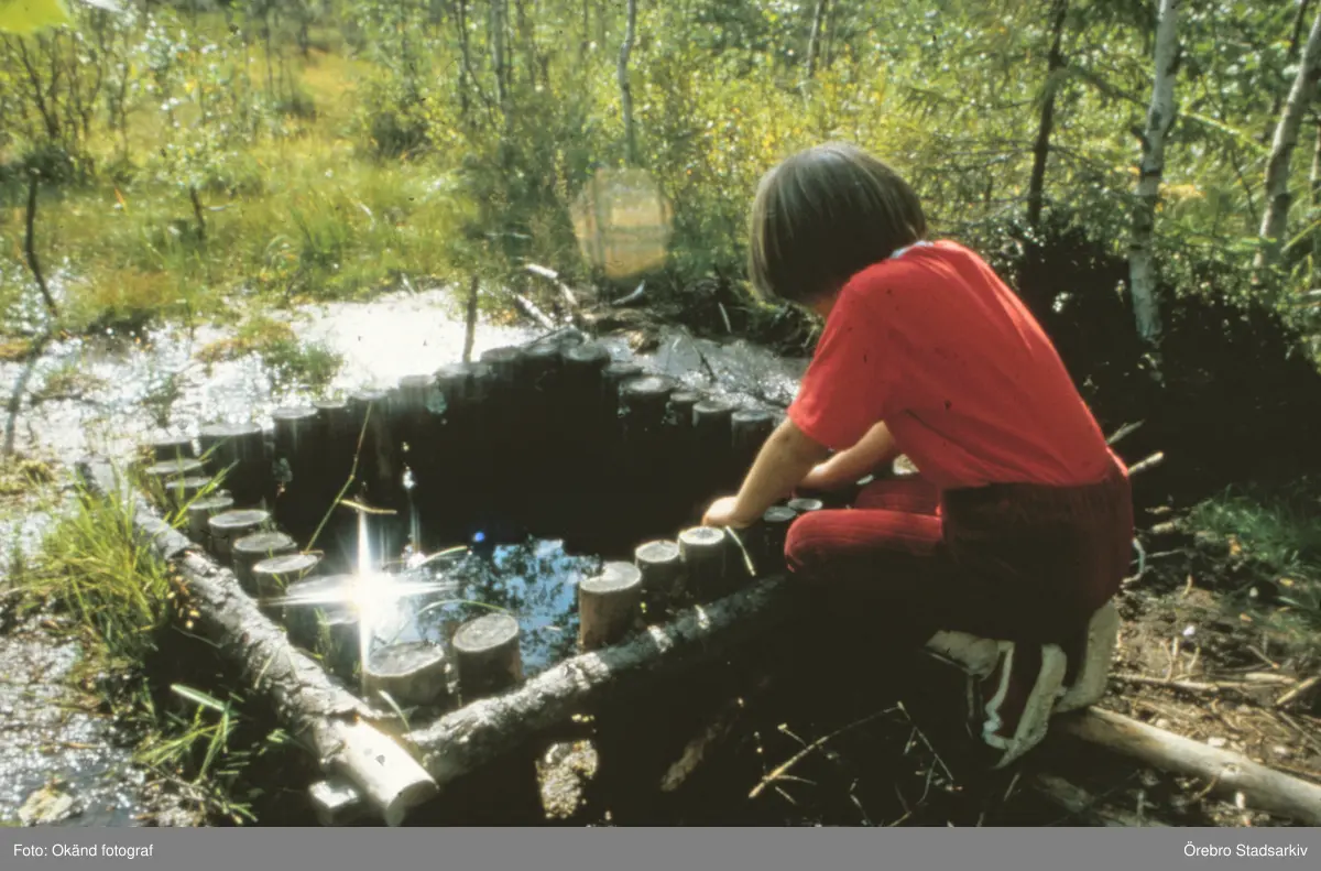 Pojke vid vattenkälla utmed Bergslagsleden, 1980-tal