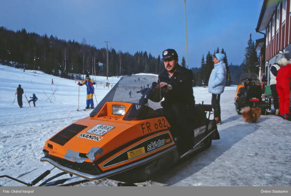 Personal på snöskoter vid Ånnaboda, mars 1983