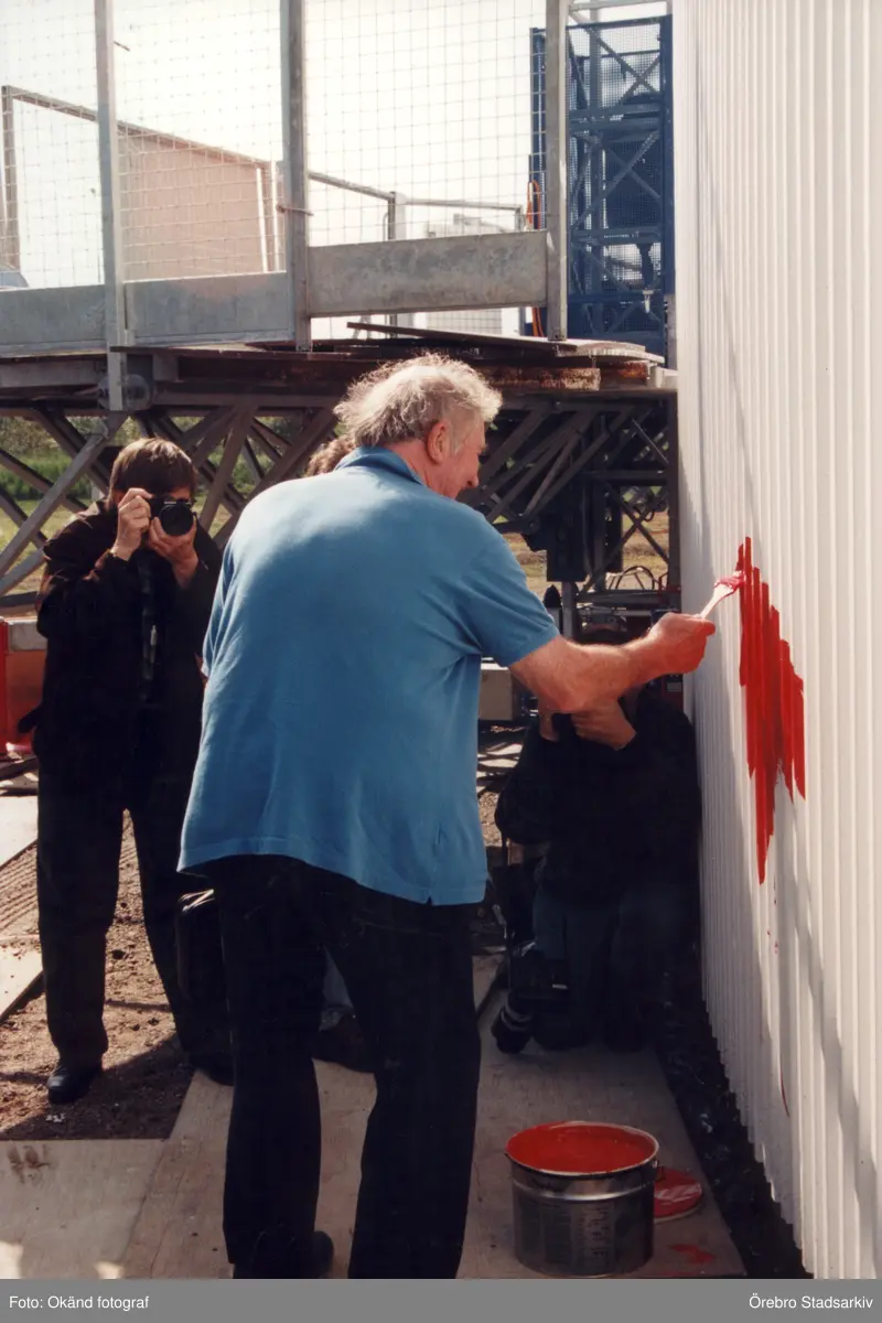Lindström målar del av oljetanken vid invigningen, 1999-06-02