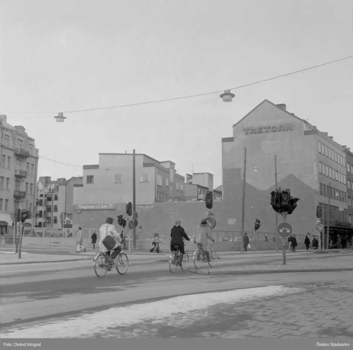 Parkering bakom staket på rivningstormt på Storgatan, 1970-tal