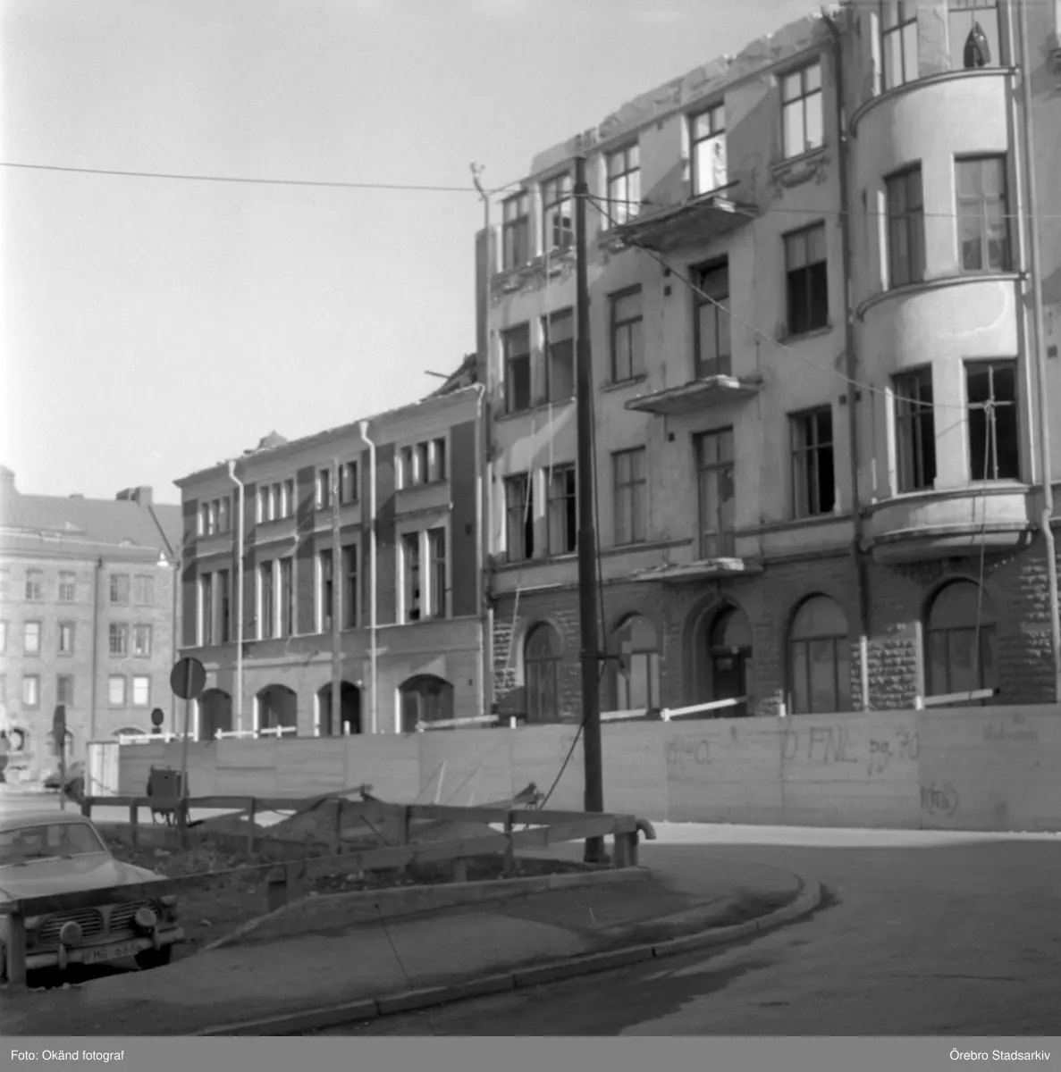 Staket uppsatt vid renovering av fastigheten Klostergatan 18, mars 1973