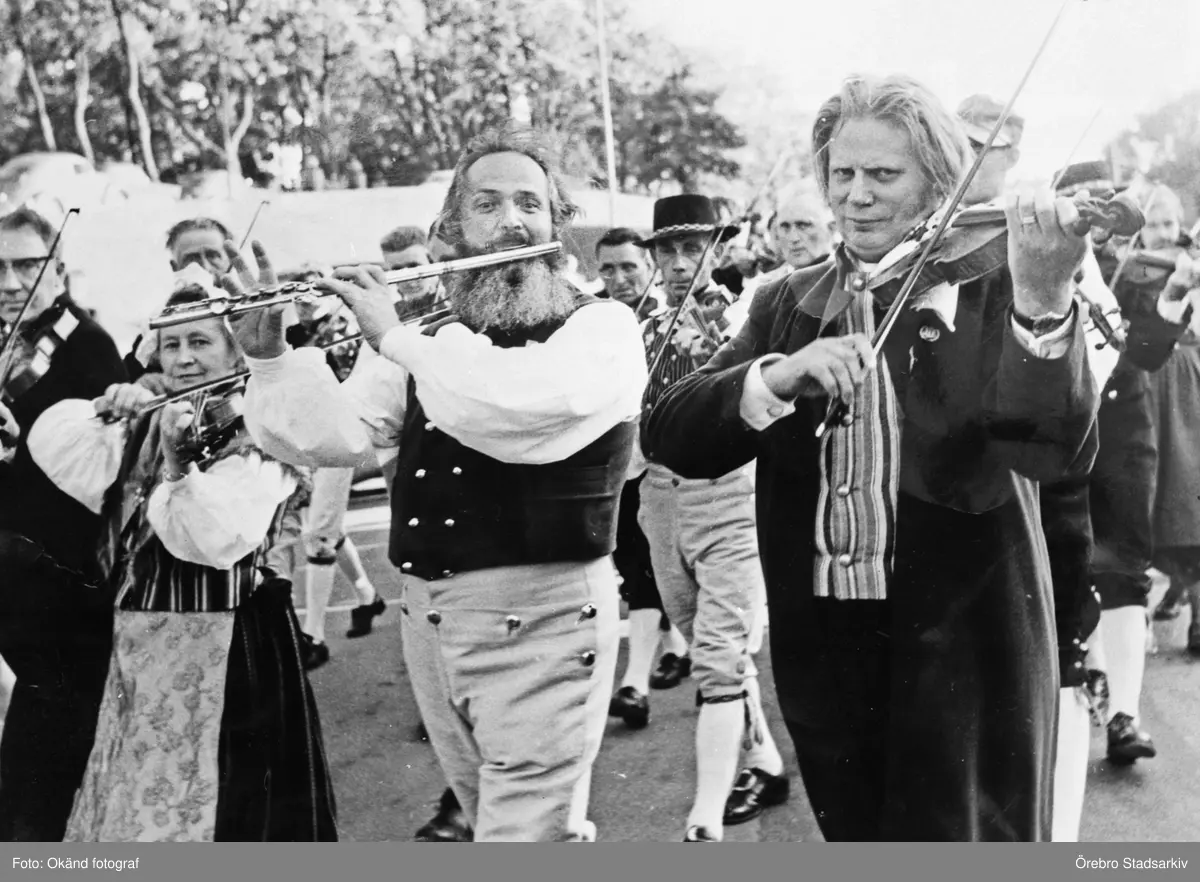 Spelmän i folkdräkt spelar folkmusik, 1950-tal
