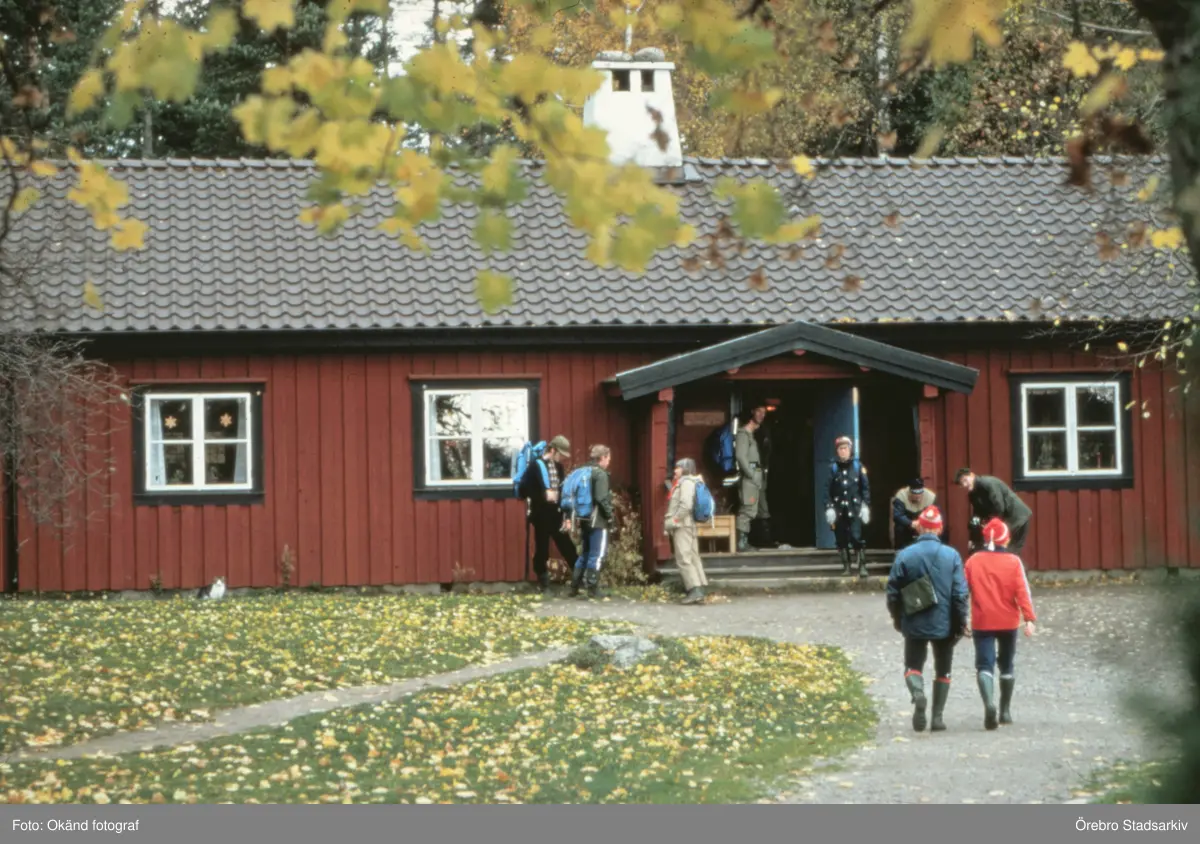 Vandrare vid raststuga vid Bergslagsleden, 1980-tal