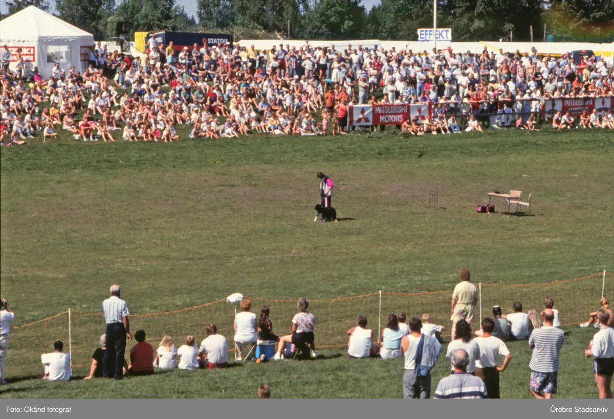 Stor publik vid agility på Vildmarksmässan i Ånnaboda, maj 1991