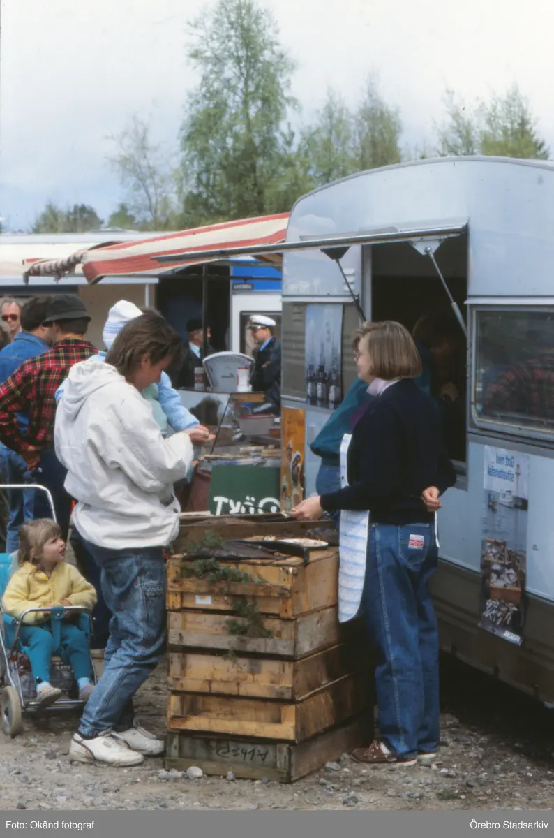 Försäljning av rökt fisk säljs på Vildmarksmässan i Ånnaboda, maj 1991